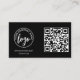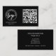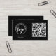 Modern minimalist black logo QR code business card template for small businesses, creatives, and personal brands. The front features a clean circular logo badge paired with a bold, easy to scan QR code that can link to your website, portfolio, booking page, menu, or storefront. Personalize the name and title, upload your logo, then add your own QR code for a crisp high contrast look that feels polished, current, and easy to read. The back includes space for phone, email, website, social handles, plus an address line for studios, offices, and local shops.