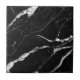 This ceramic tile features an elegant black marble design with grey and white veins.