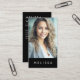 Black, vertical business cards with you name and photo on the front and name, title and contact information on the back.