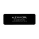 Elegant return address labels with template fields for your name and address. White text on a black background.