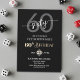 A modern minimalist design featuring elegant calligraphy on a black background. Customize the details for a cool Birthday Celebration.