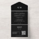 Modern Black Monogram QR Code RSVP All in One Invitation