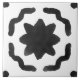 A neutral, white and black painted tile design adorns this ceramic tile.