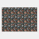 Modern Black Orange Blue Botanical Floral Pattern Wrapping Paper Sheet