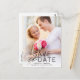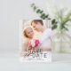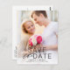 This chic, minimal save the date features simple typography and showcases a large photo of the engaged couple. On the front of the postcard, a full photo appears with a black text overlay that reads "Save the Date," along with the couple's names, wedding date, and wedding location. Add additional wedding details (such as the wedding website) to the back of the postcard.