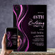 Invite your friends and loved ones with this modern black and pink birthday party invitation. The customisable text area in this invitation template allows you to effortlessly include all the necessary details for your special birthday celebration, including the guest of honour's age, date, time, venue, and RSVP information. A variety of paper types and corner styles are available for your unique invitations, along with the option to download if you prefer a digital format.