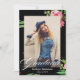 Modern Black Pink Floral Photo Graduation Party Invitation