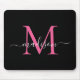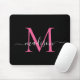 Modern Black Magenta Hot Pink Monogram Elegant Girly Script Mouse Pad