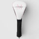 A golfer's golf head cover, featuring a modern monogram with a pale grey initial and a pretty black trendy script signature last name. Do not remove the small square shapes before the name and after the name, as they are the pretty swashes on the ends of the font.