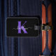 This simple, elegant black luggage tag with your first name in a trendy script font in white typed over your first initial in a modern cap font in purple on one side and your name, address and phone number on the other would look fabulous on your suitcases. It's stylish and trendy and yet very classic.