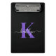 This simple, elegant black 9 x 6 mini clipboard with your first name in a trendy script font in white typed over your first initial in a modern cap font in purple is perfect for you. It's stylish and trendy and yet very classic. It will come in handy in so many situations. Perfect for work, home, school.