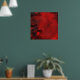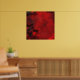 A poster with a modern abstract pattern. Red and black colours swirl, mix and mingle together. Creative, artistic and unique with a dark, mysterious flair.