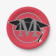 Modern Black Red Graduation Monogram Initial Paper Plate