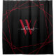 Modern Black Red Monogram Geometric Name Script Shower Curtain