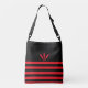Beautiful modern black and red stripes and cardinal feathers Crossbody Bag. Modern Black and Red Tote Bags.