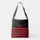 Modern Black & Red Stripes with Red Feathers Crossbody Bag