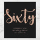 Minimalist 60th birthday black and rose gold wine bottle label in modern, chic and elegant typography style. Featuring age "sixty" in sparkly rose gold. Customise with age, name, and year of birth.