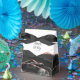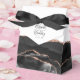 This elegant modern favour box features a black watercolor agate design trimmed with rose gold faux glitter. Personalise it with the names of the bride and groom in charcoal grey handwriting script over a large grey ampersand, along with the wedding date below.