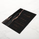 The left-hand edge of this elegant modern wedding invitation features a black watercolor agate border trimmed with faux rose gold glitter. The customisable text combines handwriting, copperplate and italic fonts in real rose gold foil on an off-black background. The reverse side features a matching black and rose gold agate design.