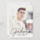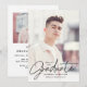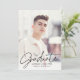 Celebrate your graduation with this modern and stylish graduation party invitation. Featuring your vertical senior photo, this design showcases “Graduate” in an elegant black handwritten script overlay, adding a sophisticated touch. Personalise the front with your name, school, and graduation year to make it uniquely yours. The back includes a horizontal photo with all your graduation party details displayed below. Perfect for high school and college graduates, this minimalist yet timeless invitation is the perfect way to invite loved ones to your special celebration.
