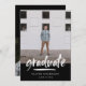 Modern black script 3 photo stylish graduation announcement and party invitation.