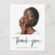 Modern script lettering black and white graduation one photo thank you postcard features trendy thankful hand script and one photo with a custom personalised thank you message and return address on the back of the simple and chic high school and college graduate thank you card.