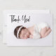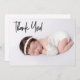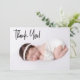 The front of the card features the words "thank you" in a modern black script handlettering style typography, adding a contemporary and stylish look. This elegant design is perfect for conveying your gratitude to friends and family who celebrated your baby shower and the birth of your new addition.