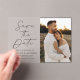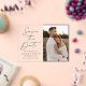 Get ready to announce your big day in style with this stunning Modern Black Script Photo Save the Date Card! Featuring a transparent acrylic background, this chic design showcases “Save the Date” in elegant black calligraphy, creating a sophisticated yet trendy look that perfectly complements modern weddings. Personalise this minimalist save the date with your names, wedding date, location, and a vertical engagement photo to add a personal touch. This acrylic save the date is a perfect choice for couples who want to make a lasting impression and set the tone for a stylish, contemporary wedding celebration.