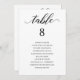 Modern and elegant design printed Black White Calligraphy Script Table Number Seating Chart Cards that can be customized with your text and add each table number card to your cart, one by one. Please click the "Customize it" button and use our design tool to modify this template. Check out the Graphic Art Design store for other products that match this design!