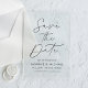 Announce your upcoming wedding with our trendy Modern Script photo save the date acrylic card! Featuring "Save the Date" in chic black calligraphy, this design shines on a transparent acrylic background, adding a modern touch to your wedding announcement. Personalise this minimalist save the date with your names, wedding date, location, and wedding website to keep your guests informed and excited. Perfect for contemporary weddings, this acrylic save the date card captures your style effortlessly and coordinates beautifully with our Modern Script wedding collection for a cohesive look.