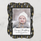 Send customisable and personalised holiday greetings to friends, colleagues and family in simple, minimalist, elegant, fun, festive and modern photo cards! A beautiful frame of variety of gold and white Christmas Forest Pine Trees on black background surrounds your photo on bracket shape paper. The greeting " Merry Christmas " is written in elegant calligraphy, and below features your custom greeting message from your family name in modern typography. Reverse to reveal a beautiful the full Christmas Forest Pine Trees pattern background.
