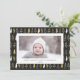 Send customisable and personalised holiday greetings to friends, colleagues and family in simple, minimalist, elegant, fun, festive and modern photo cards! A beautiful frame of variety of gold and white Christmas Forest Pine Trees on black background surrounds your photo. The custom greeting 'Merry Christmas' and your family name features in modern typography. Reverse to reveal a beautiful the full Christmas Forest Pine Trees pattern background.