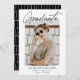 Trendy graduation announcement featuring the graduate's photo framed by a white rough edge border. "Graduate" is displayed in a black signature script with the graduate's name, school name, and graduation year shown below. The modern graduation announcement reverses to display a unique black and white stamped line pattern. This photo graduation announcement card is perfect for both high school and college graduations.