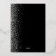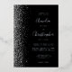 The left-hand edge of this elegant modern wedding invitation features a silver faux glitter design. The customizable text combines real silver foil handwriting, copperplate and italic fonts on a black background. The reverse side features a matching black and silver glitter design.