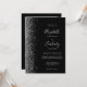 The left-hand edge of this elegant modern wedding invitation features a silver faux glitter design. The customisable text combines silver grey handwriting, copperplate and italic fonts on a black background. Add your favourite photo to the reverse side, along with additional text and a QR code to send guests to your wedding website.