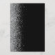 The left-hand edge of this elegant modern wedding menu features a faux silver glitter border. The customisable text combines silver grey whimsical handwriting script and copperplate fonts on a black background. The reverse side features a matching black and silver glitter design.