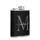 Modern Black Silver Grey Monogram Script Name Hip Flask