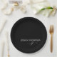 Modern Black Simple Script Girly Monogram Name Paper Plate