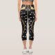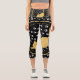 Modern Black Sparkles Cat Paw Pattern Personalised Capri Leggings