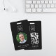 Modern black employee staff badge with a photo, QR code, company logo and employee's name and job title. You can easily customise it with your business details.
