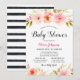 Modern Black Stripe Pink Floral Girl Shower Invitation