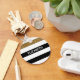 Personalise this modern wide horizontal black and white stripes pattern keychain with a gold glitter stripe by adding the name of any girly girl. This trendy graphic striped pattern is perfect for the chic fashionista. Flat printed image, NOT actual glitter.