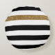Personalise this modern wide horizontal black and white stripes pattern round throw pillow with a glitzy gold glitter-like stripe by adding the name of any girly girl. This trendy graphic striped pattern is perfect for the chic fashionista. Flat printed image, NOT actual glitter.