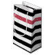 Modern Black Stripes FAUX Red Glitz and Name Small Gift Bag