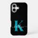 Modern Black Teal Script Monogram iPhone 16 Case