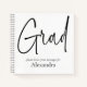 Modern Black Text Grad Name Graduation Guest Book. Display at your graduation party for guests to leave their wishes for the graduate! Grad is in a modern set script, and the rest of the text you can easily personalise. Click the Edit further option should you wish to change text and background colours.
