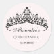 Modern and elegant black princess tiara Quinceanera round sticker The background colour can be changed