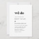 This modern black typography We Do wedding invitation is perfect for a simple wedding. The black and white minimalist design features a retro yet contemporary font with a unique rustic bohemian feel. Perfect for any season. Keep it minimal, as is, or add your own graphics and artwork.