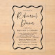 Invite guests to your rehearsal dinner in style with our Modern Black Wavy Frame wedding rehearsal dinner invitations. The design features the words "Rehearsal Dinner" displayed in a handwritten black script contrasting with a transparent acrylic background. A black wavy border surrounds your rehearsal dinner details. This retro rehearsal dinner invitation is perfect to use for casual and modern rehearsal dinners.