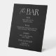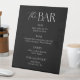 Elevate your reception with this Personalised Modern Black Wedding Bar Menu Pedestal Sign, a chic addition to any wedding bar. Perfect as a wedding bar sign, it enhances your wedding bar decor while inspiring stylish wedding bar ideas and completing your wedding bar setup. Designed to complement a black and white wedding, it captures the essence of a timeless elegant wedding and the sophistication of a classic old money wedding.